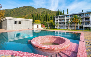 На территории отеля расположены подогреваемый открытый бассейн с пресной водой и ресторан национальной абхазской кухни «Апацха».