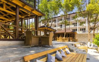 Симпатичное 3-этажное здание отеля построено в 2018 году. Закрытая для посторонних территория устроена по-домашнему уютно: гостей ждут беседки, места для отдыха под открытым небом, ровные дорожки из плитки, пышные субтропические растения во дворе.